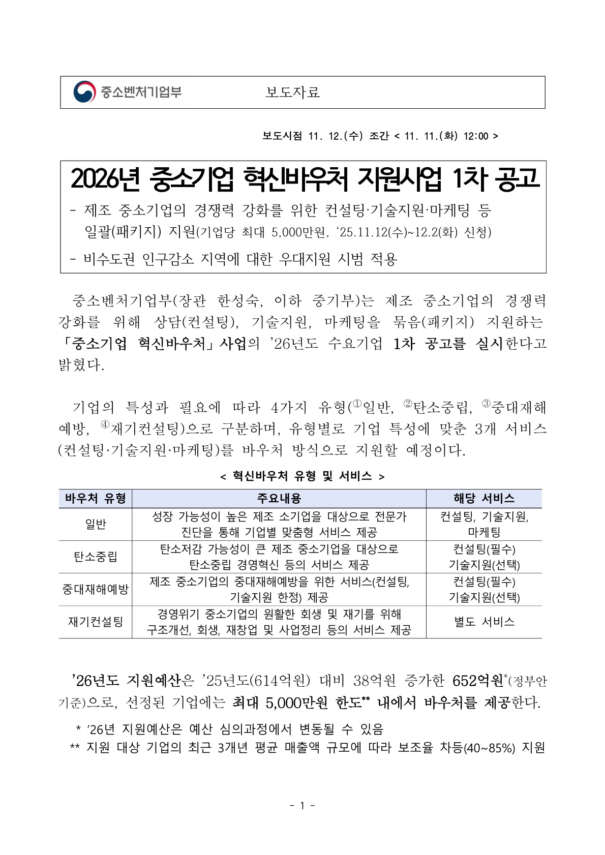 2026년 중소기업 혁신바우처 지원사업 1차 공고