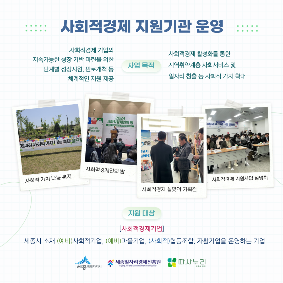 오늘은 세종시 중소기업과 사회적경제기업 지원을 선도하며,