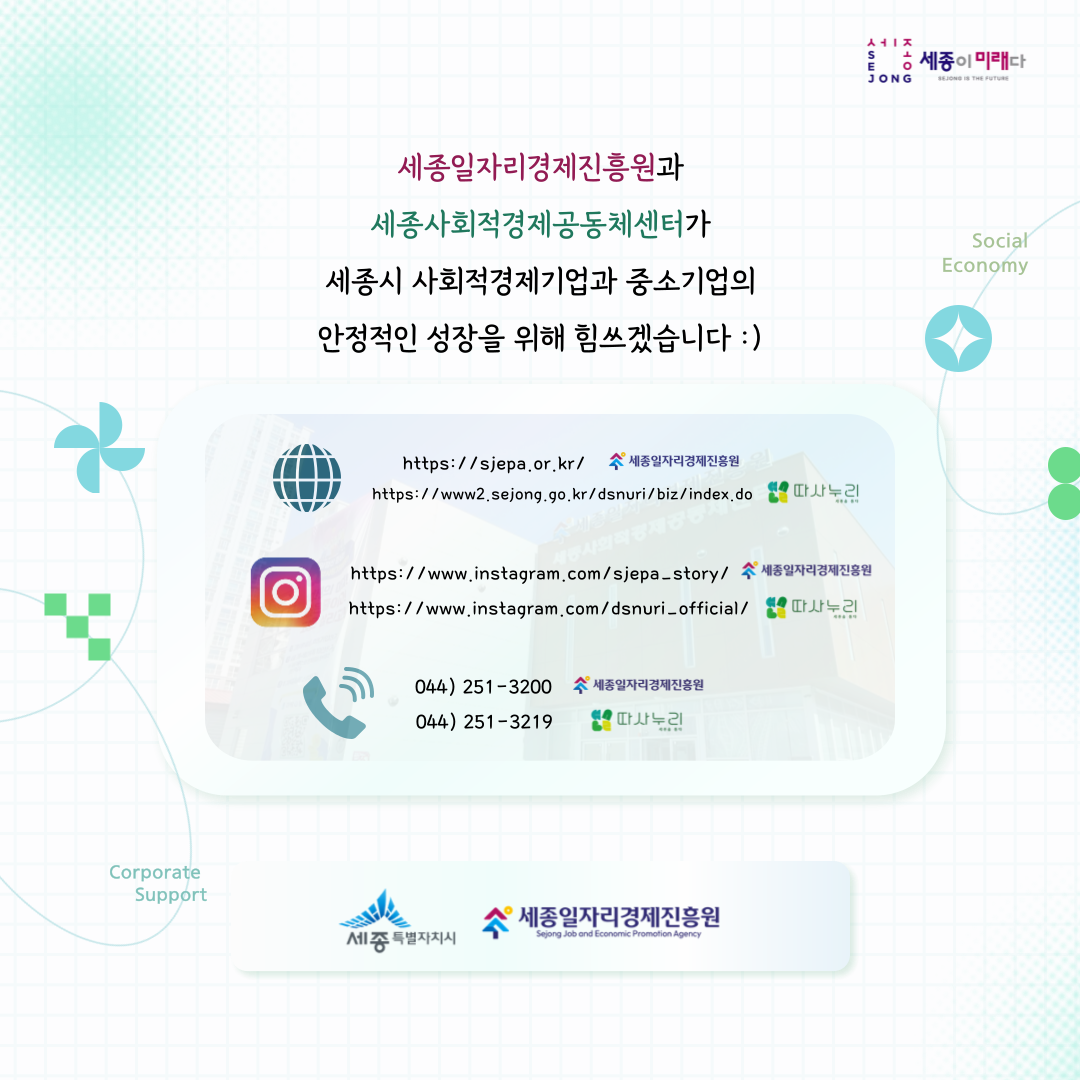 안녕하세요! 세종시 일자리경제 선도 기관 세종일자리경제진흥원입니다.