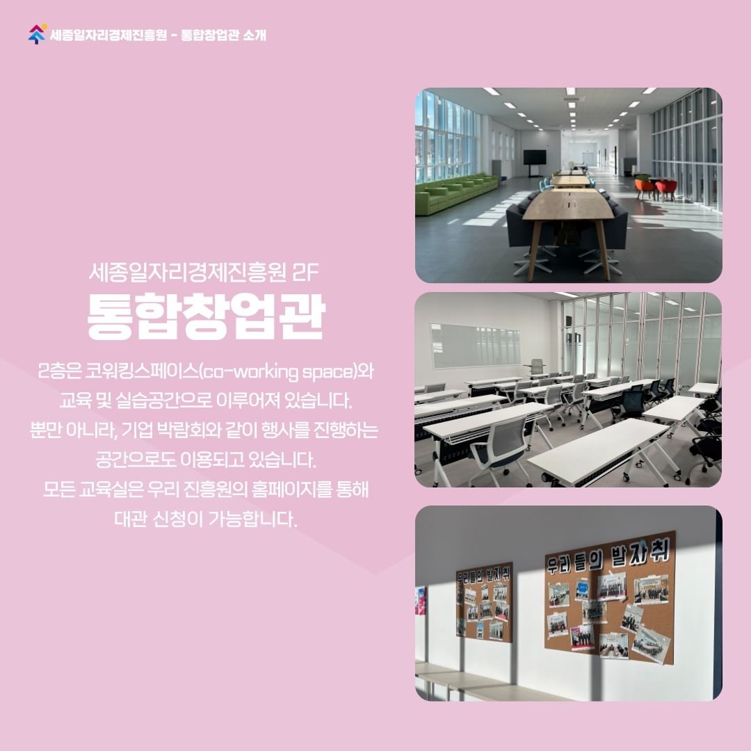 2. 대관시설 : 코워킹스페이스, 교육 및 실습공간 이용 가능