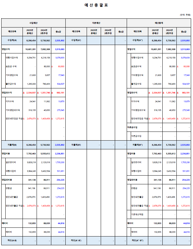 2025년도 (재)세종일자리경제진흥원 본예산서