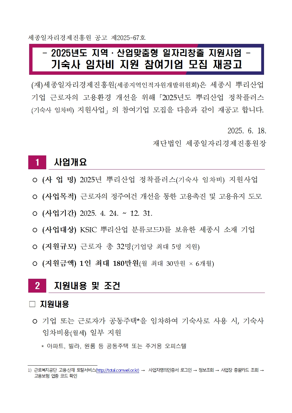 2025년 뿌리산업 기숙사 임차비 지원 참여기업 모집 재공고