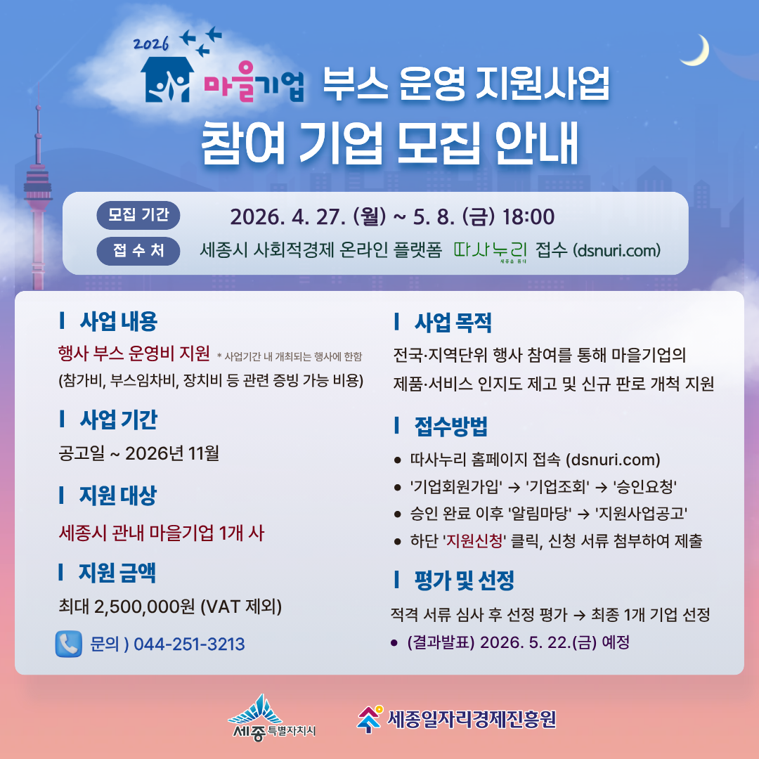 마을기업 부스운영지원사업 참여기업 모집 안내