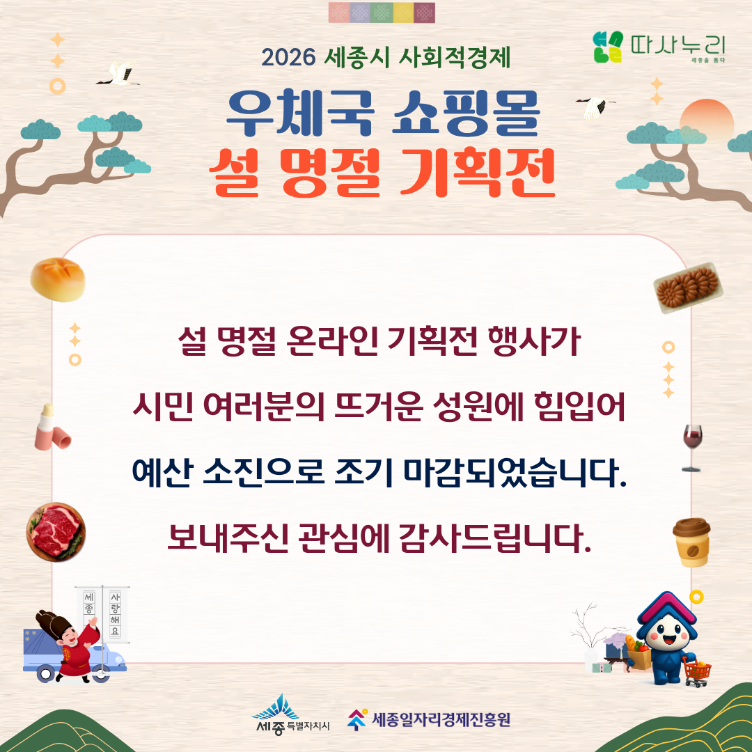 2026년 세종시 사회적경제 우체국 쇼핑몰 설 명절 기획전 조기 마감 안내