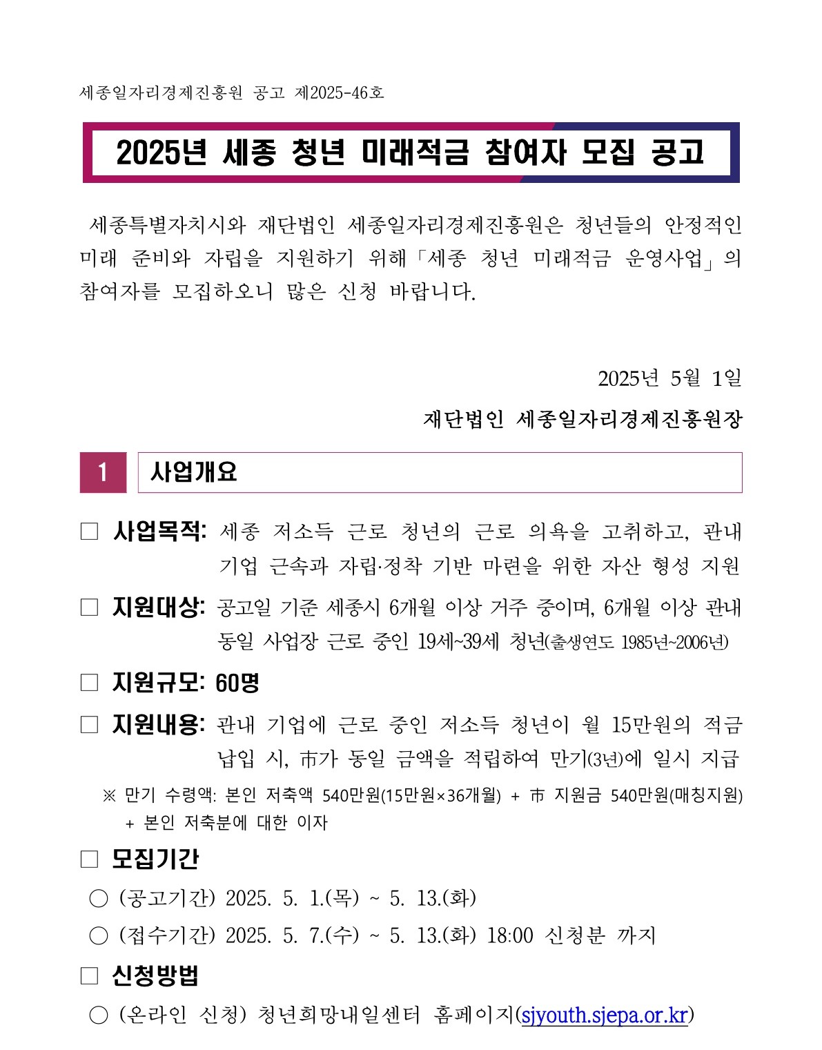 ※ 본 사업의 신청은 세종청년희망내일센터 홈페이지(http://sjyouth.sjepa.or.kr)에서 하실 수 있습니다