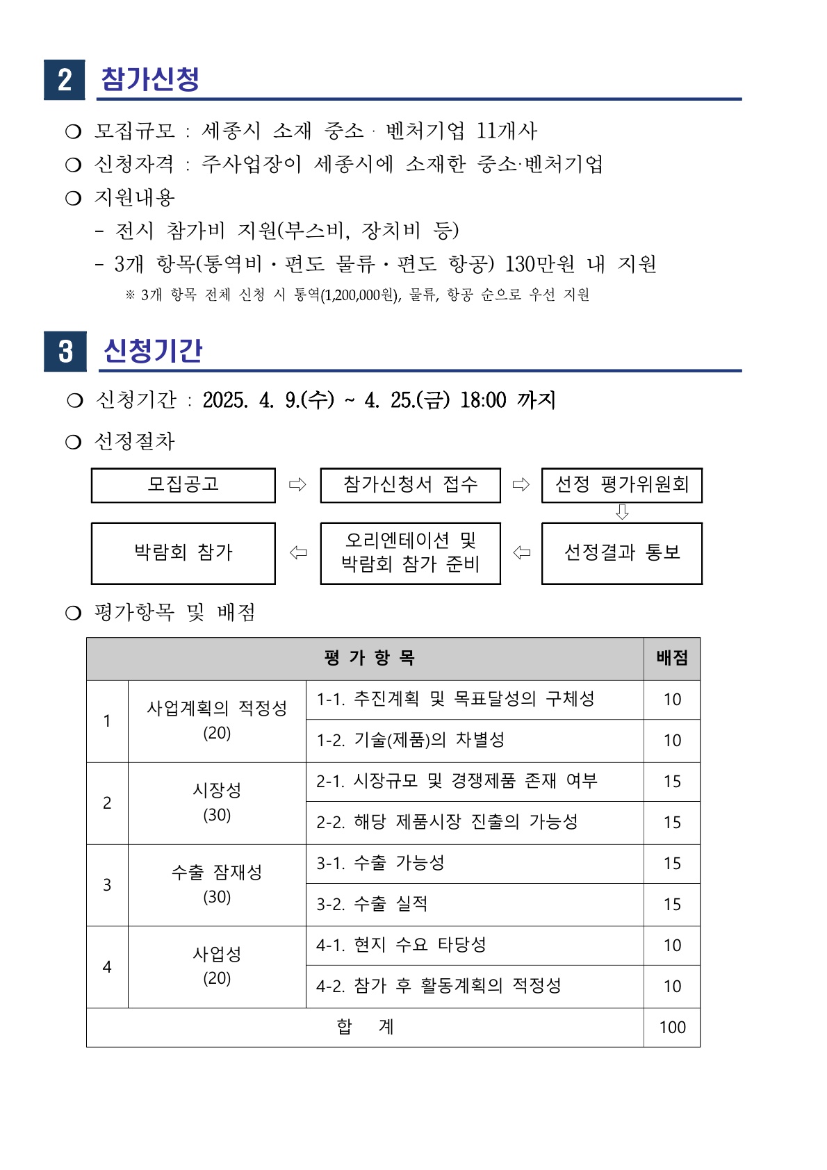 2025년도 세종시 국내·해외판로지원사업 통합공고 심사 결과 및 최종 선정기업 공고