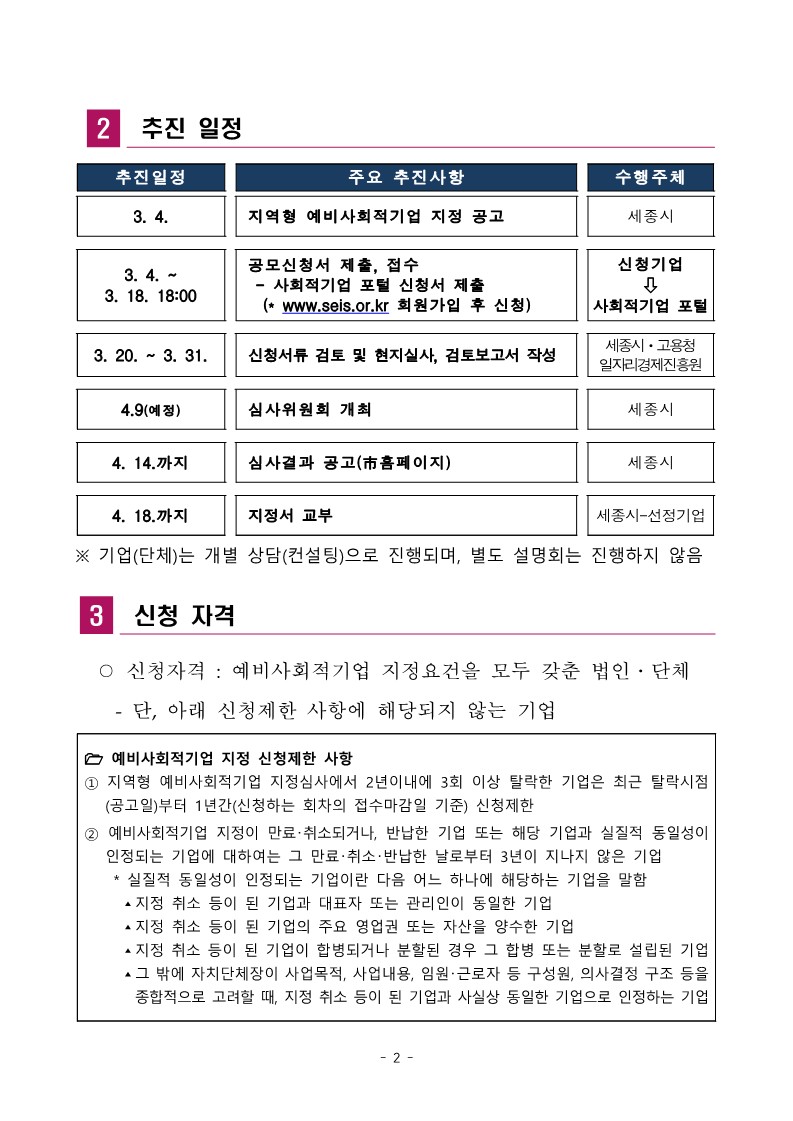 - 세종특별자치시 기업지원과 사회적기업 담당자(☎044-300-4833)