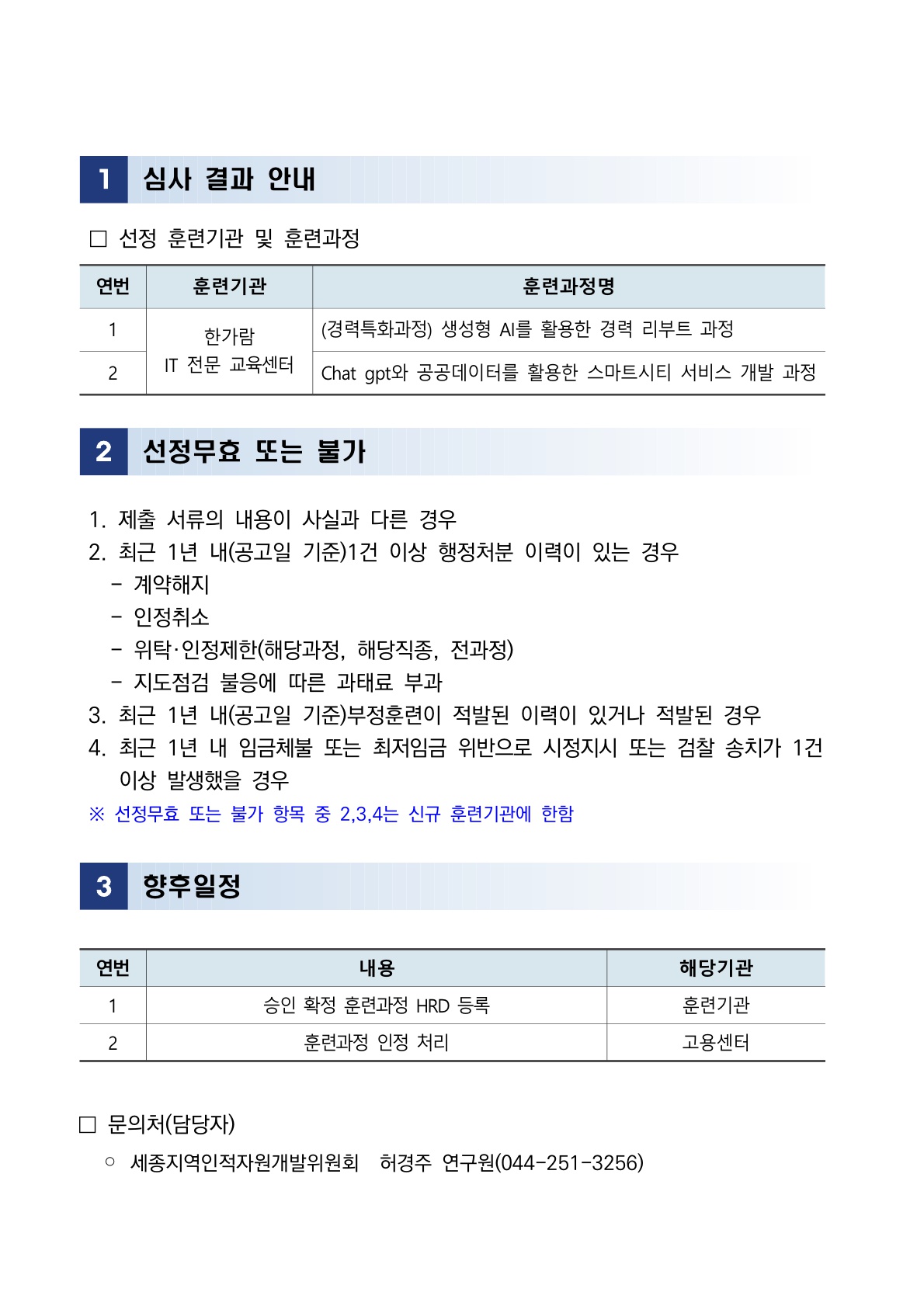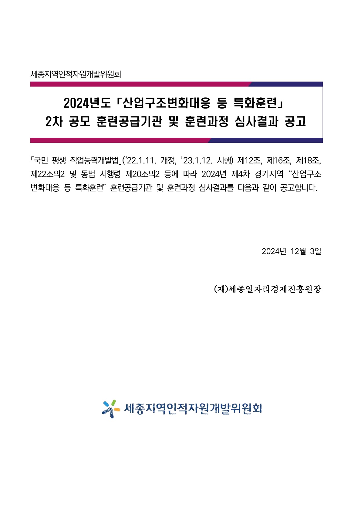 2024년도 제2차「산업구조변화대응 등 특화훈련」심사결과