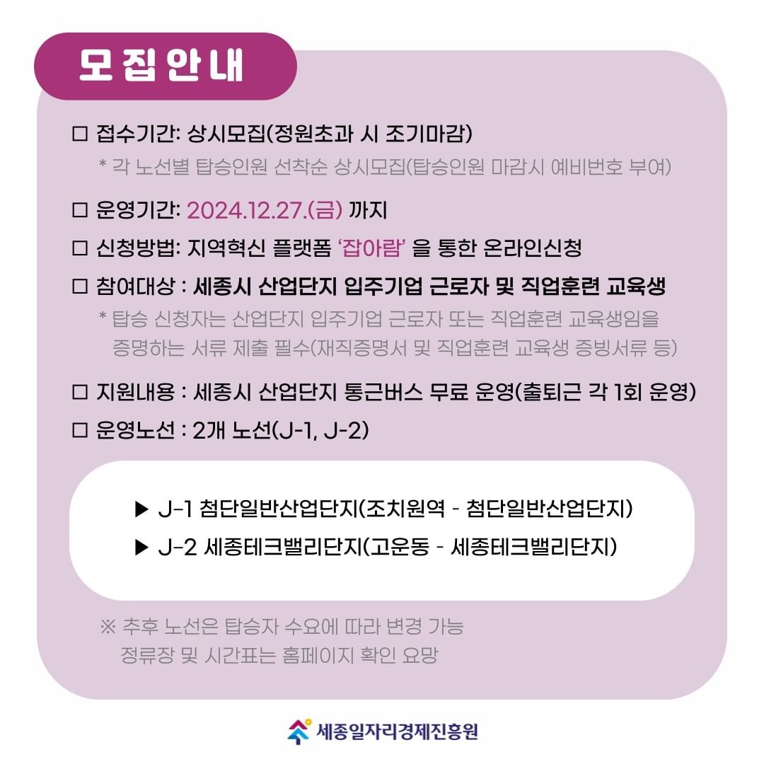 3. 지원내용 : 세종시 산업단지 통근버스 무료 운영(출퇴근 각 1회)