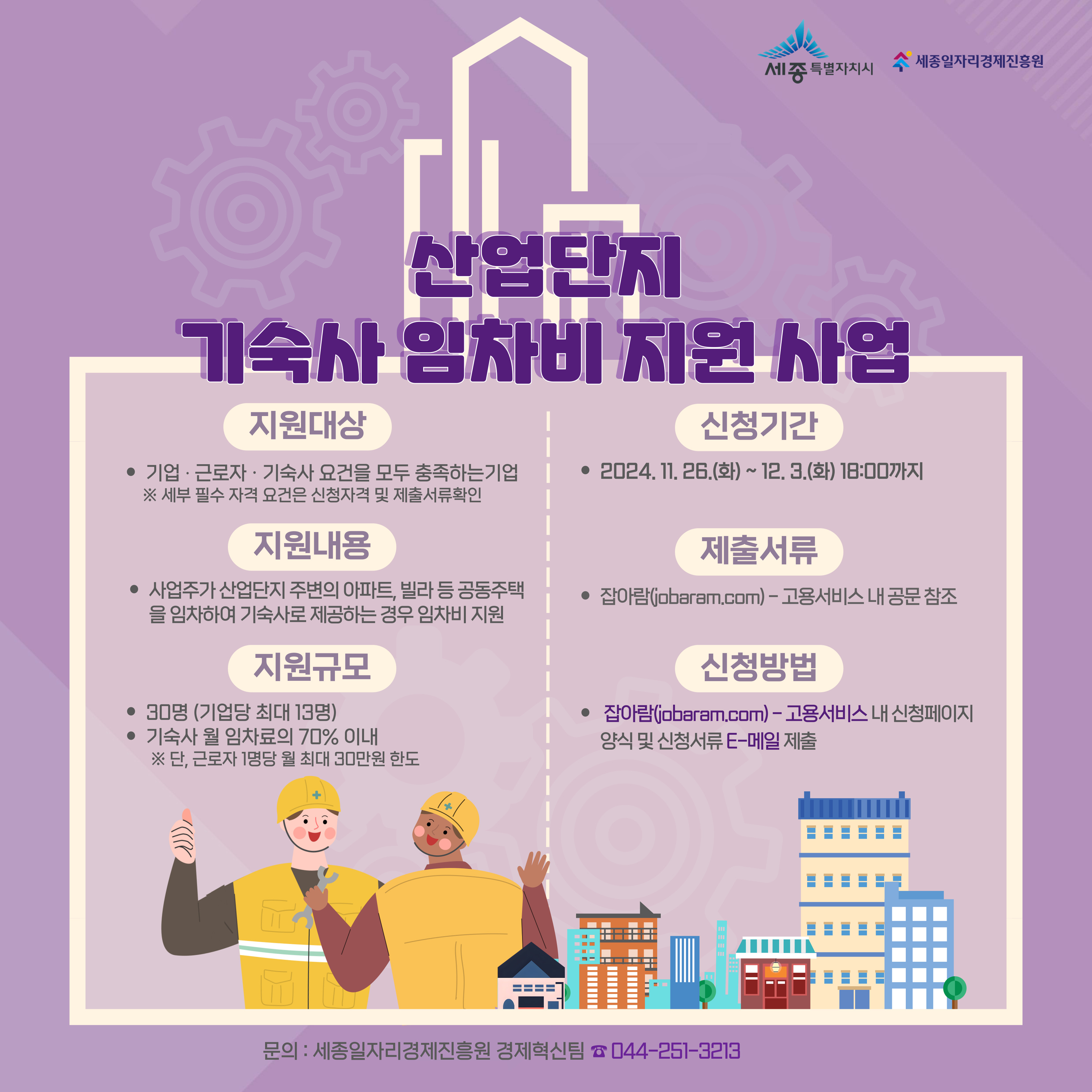 '세종시 산업단지 근로자 기숙사 임차비 지원사업'에 참여하실 기업을 추가 모집중이오니,