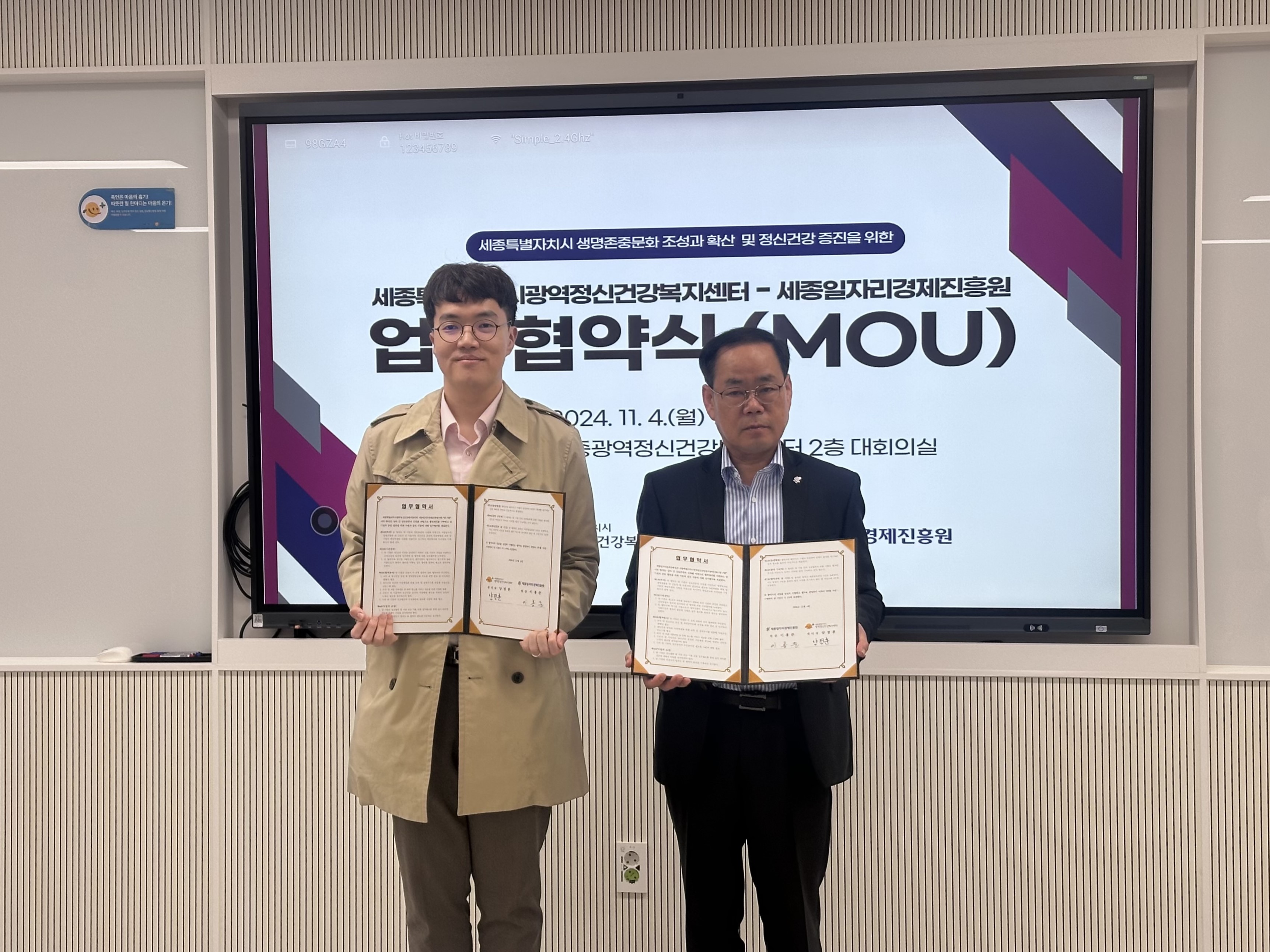2024. 11. 4. 세종일자리경제진흥원-세종광역정신건강복지센터 업무협약 체결