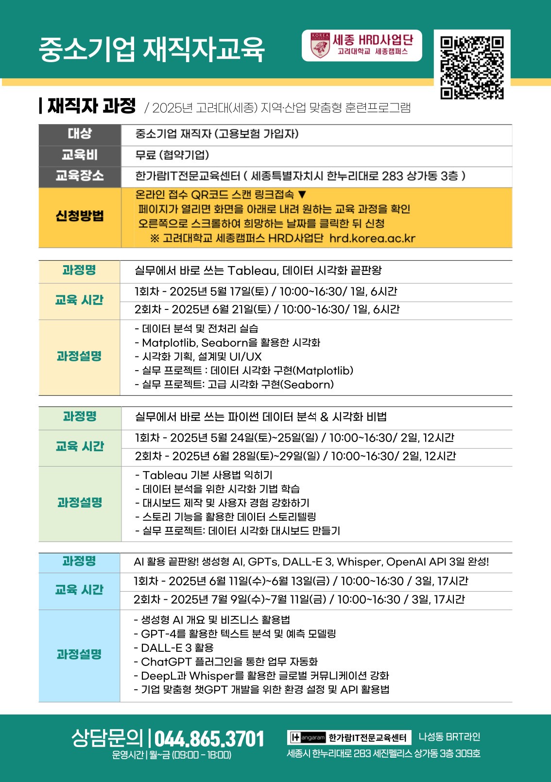 중소기업 재직자과정 안내 및 신청: 고려대 HRD사업단 안내 페이지(hrd.korea.ac.kr)