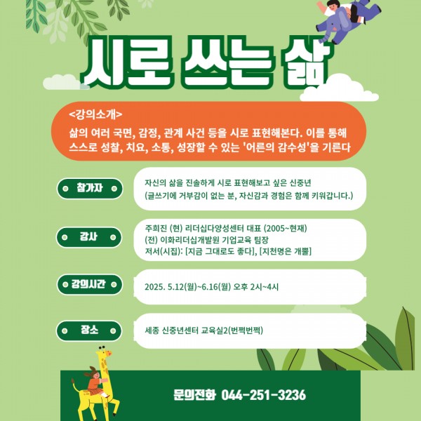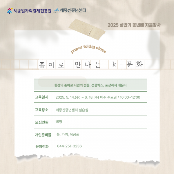 [세종신중년센터] 2025 상반기 동년배 자율강사 교육생 모집 안내