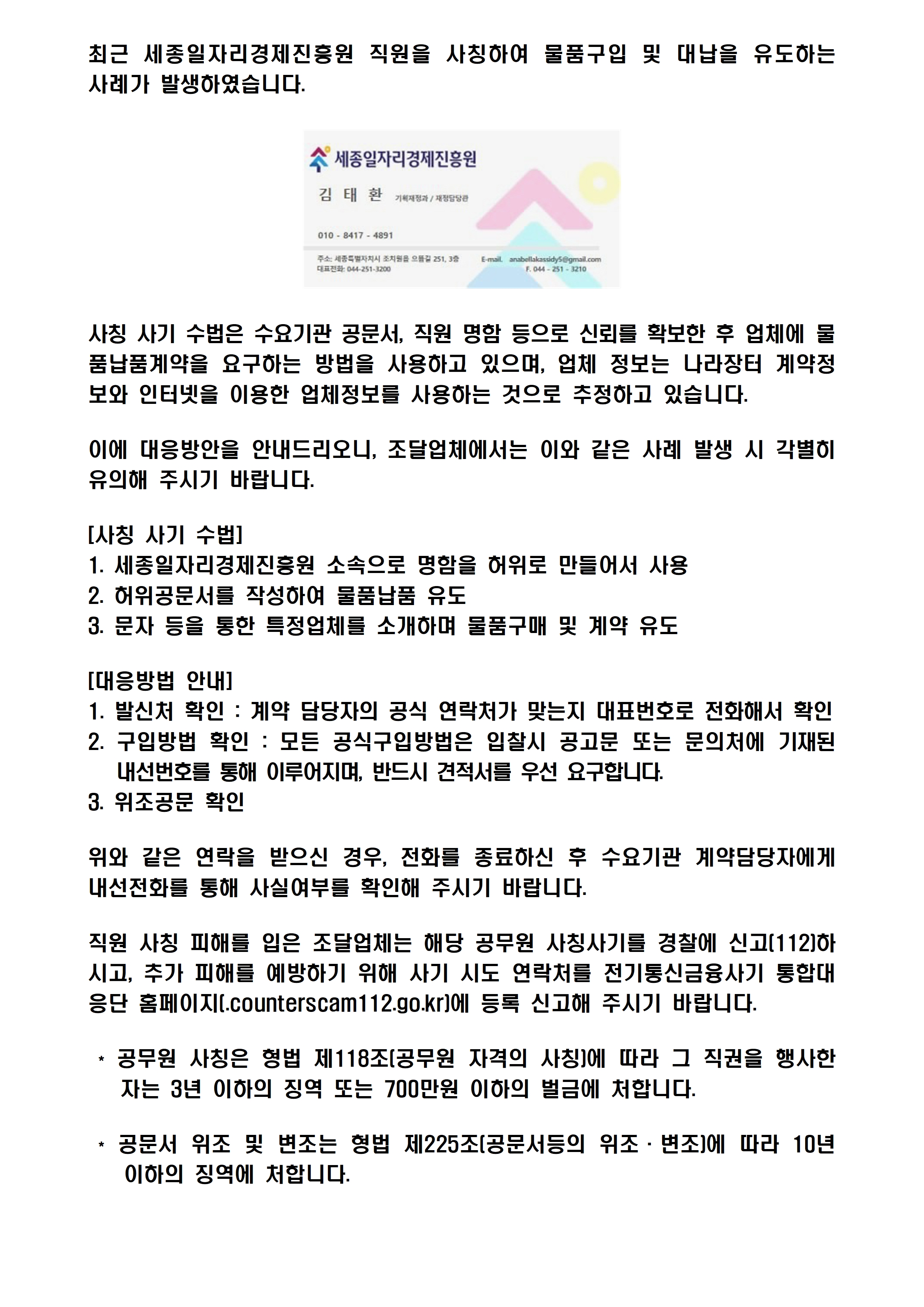 세종일자리경제진흥원_임직원_사칭_허위구매_사기_주의.jpg