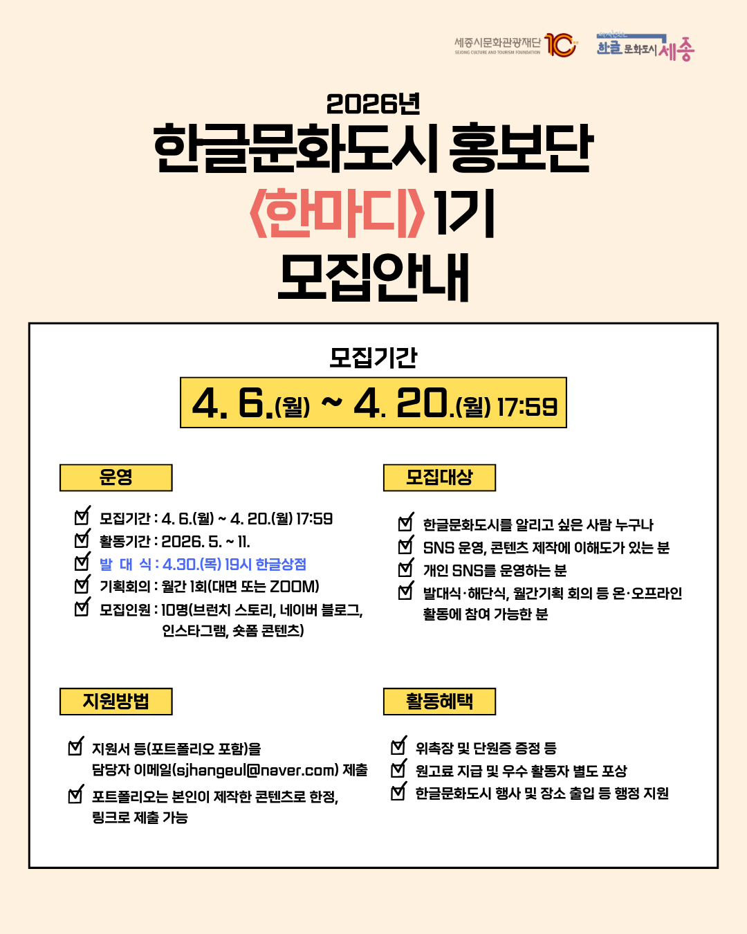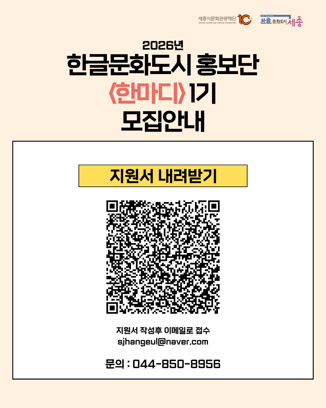 [세종특별자치시청] 한글문화도시 홍보단 「한마디」 1기 모집