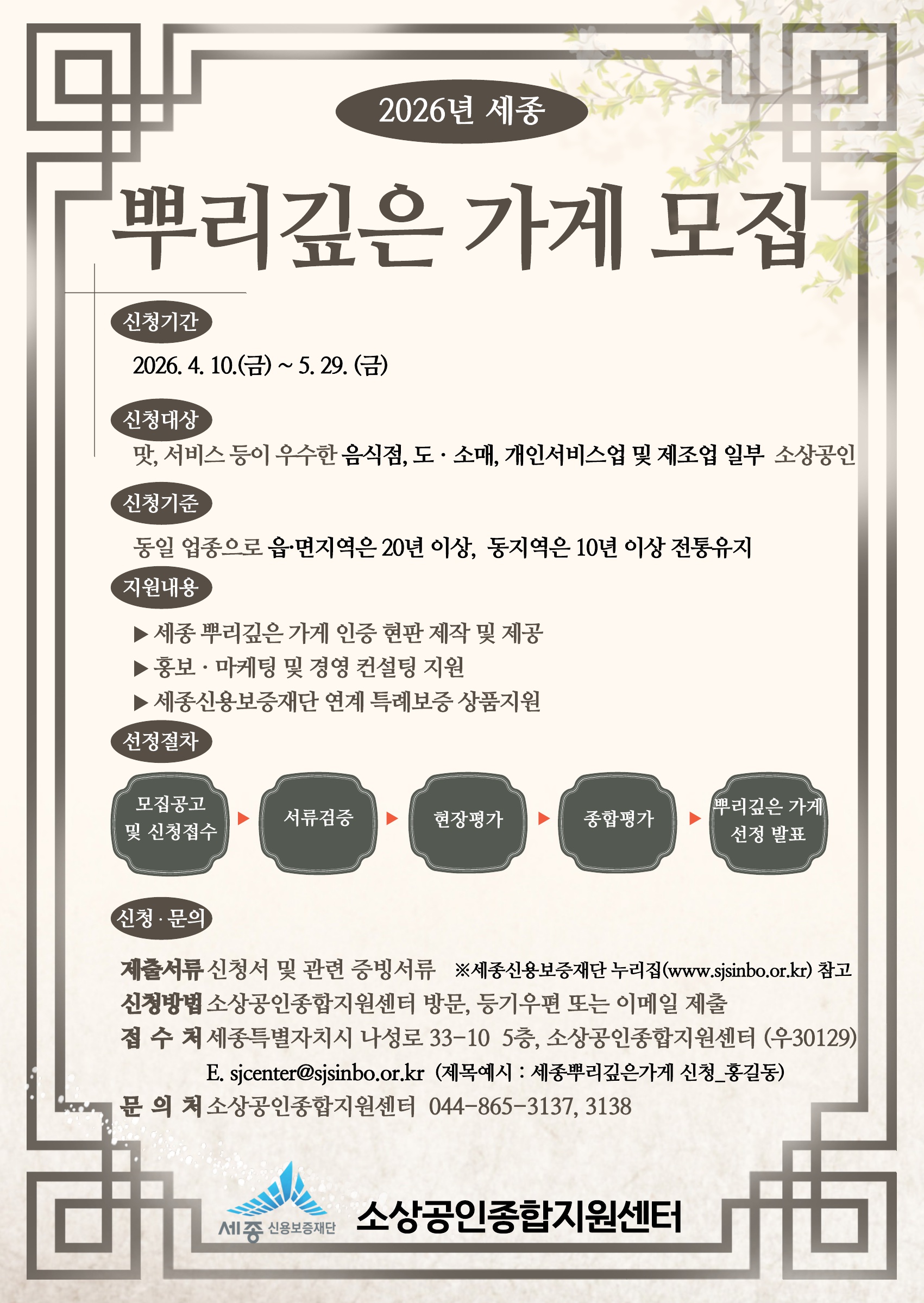 [세종신용보증재단] 2026년「세종 뿌리깊은 가게 선정」계획 공고