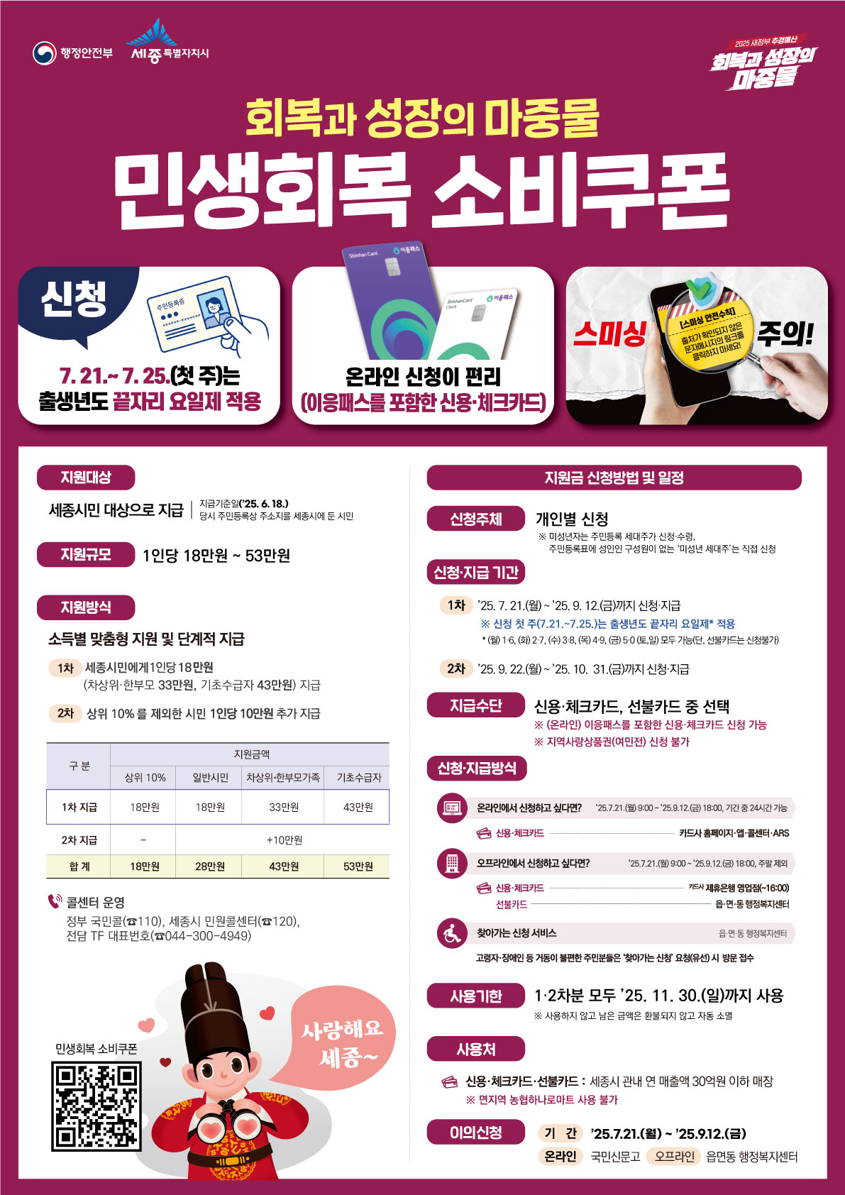 <세종시 민생회복 소비쿠폰 신청 안내>