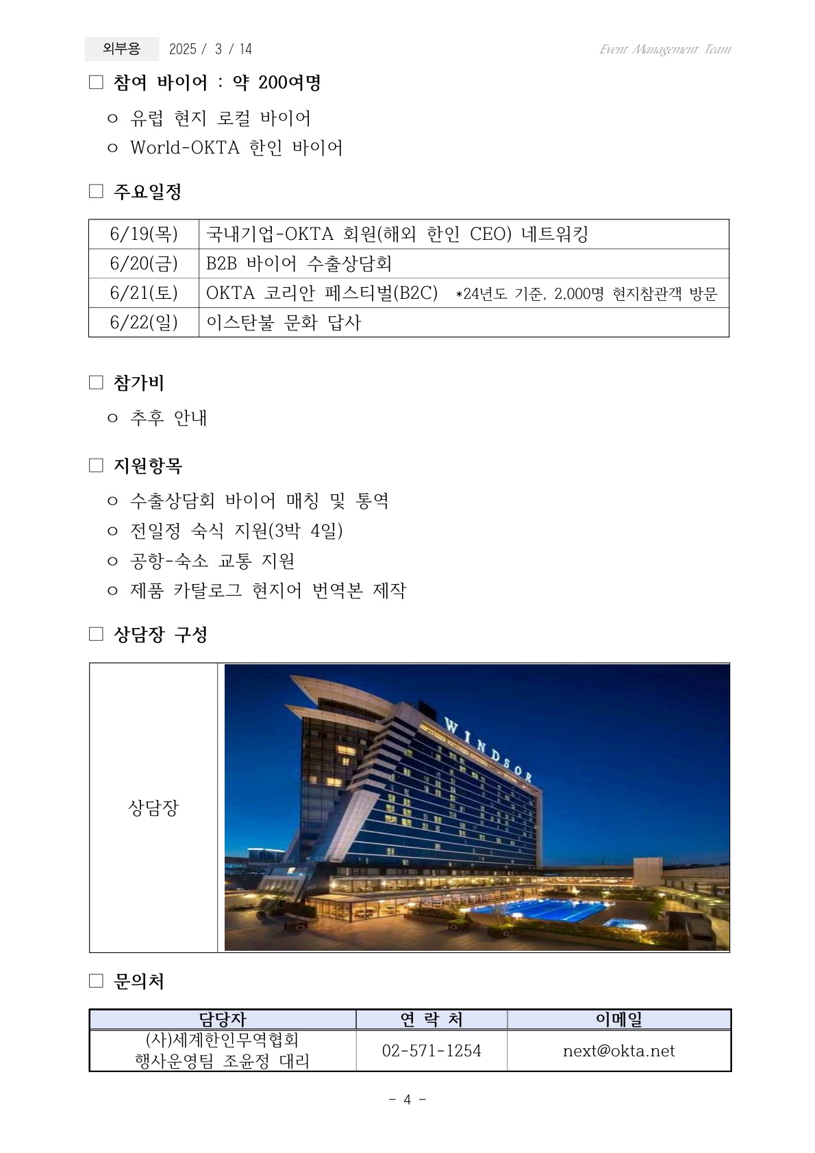 [(사)세계한인무역협회] 2025 월드옥타 행사 연계 해외 수출상담회 모집 공고