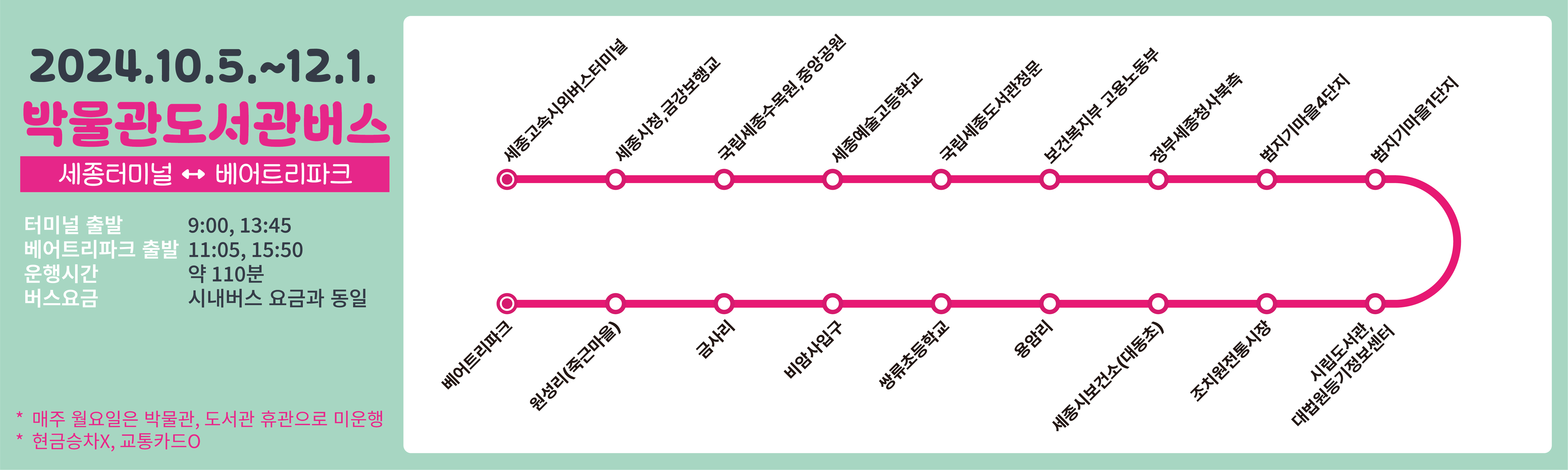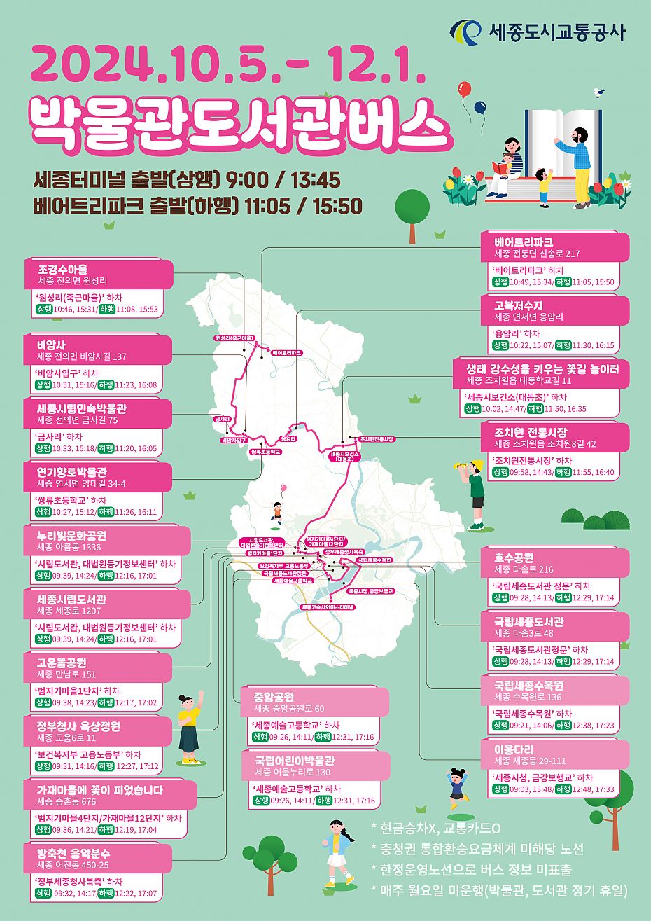 [세종도시교통공사] 박물관 도서관 버스 운행 안내(24. 10. 5.(토) ~ 24. 12. 1.(일))